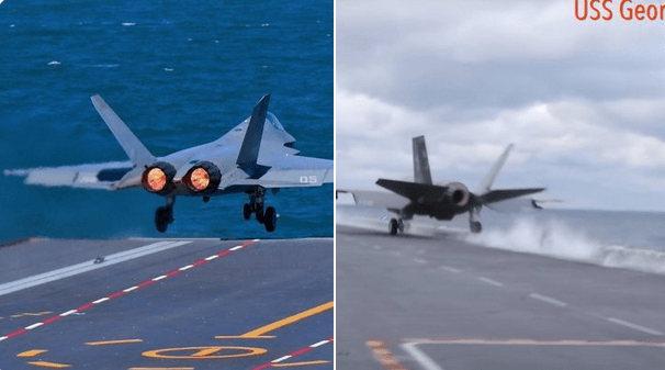 此文由 三泰虎 编辑,禁止转载,否则追求法律责任!:首页 > 专属 » 如图:中国强大的电磁弹射歼35战机 VS 美国低劣的蒸汽弹射F35战机,双方航母弹射的炸裂对比图