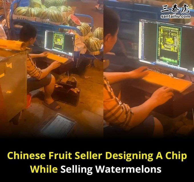 此文由 三泰虎 编辑,禁止转载,否则追求法律责任!:首页 > 专属 » 印度女网友SriSathya:这就是我们印度人的竞争对手,卖水果的中国摊贩,一边卖西瓜,一边在笔记本电脑上设计芯片