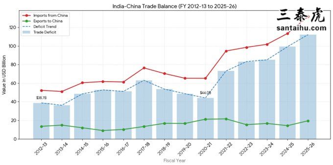 此文由 三泰虎 编辑,禁止转载,否则追求法律责任!:首页 > 专属 » 自莫迪2014年执政以来,印度与主要战略竞争对手中国之间的贸易逆差,增长了3倍,比印度一年的军费还多,印网友热议