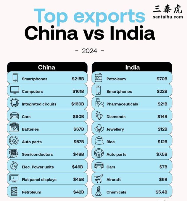 2024年中国 vs 印度——主要出口产品对比
