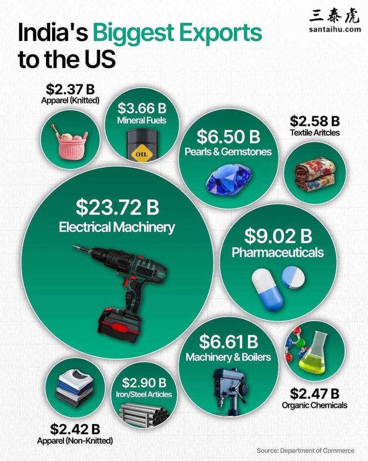 印度对美国出口十大品类: