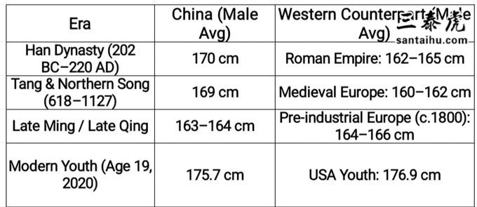 没错,身高和经济、营养密切相关。古代和平时期,中国男性普遍比西方人高。但遇到战争和饥荒,身高就大幅下降。现代中国年轻人,身高已经基本追上美国同龄人。
