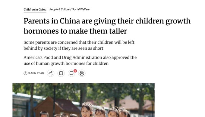 I spent ~1 year working in China between 2012 and 2024 and although I was not typically around 18-year-olds, my observations do not match what you are saying. I am 6'1" and rarely saw anyone my height. I will attest though to Chinese now eating more protein, especially pork.